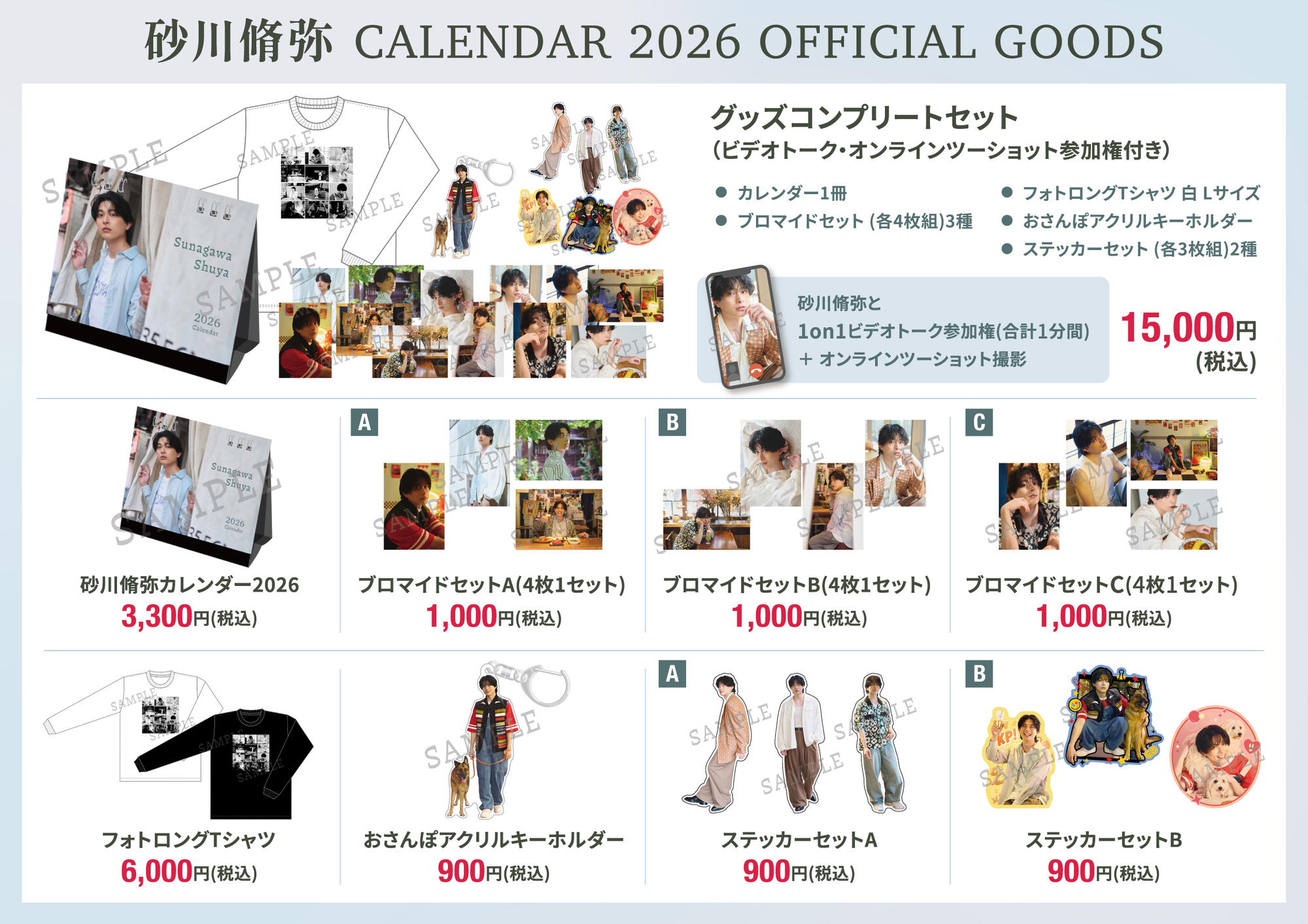 砂川脩弥カレンダー2026 & バースデーイベント2025グッズ オンライン販売が10月25日(土) 12時からスタートいたします!